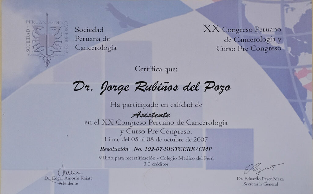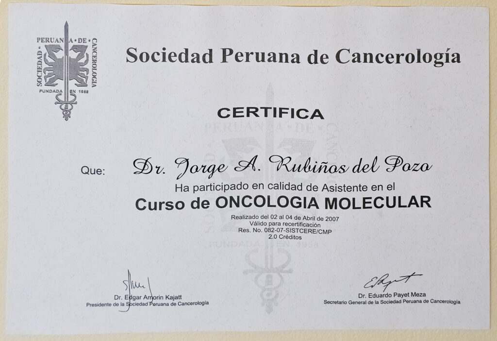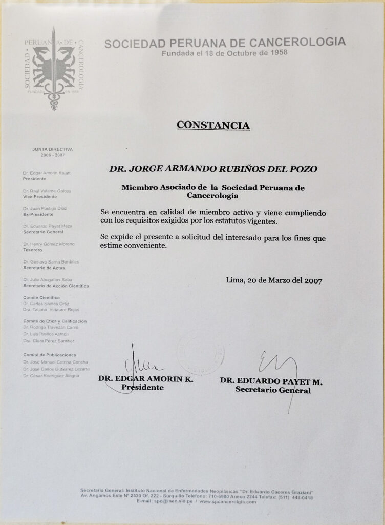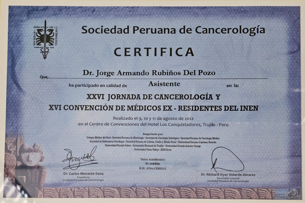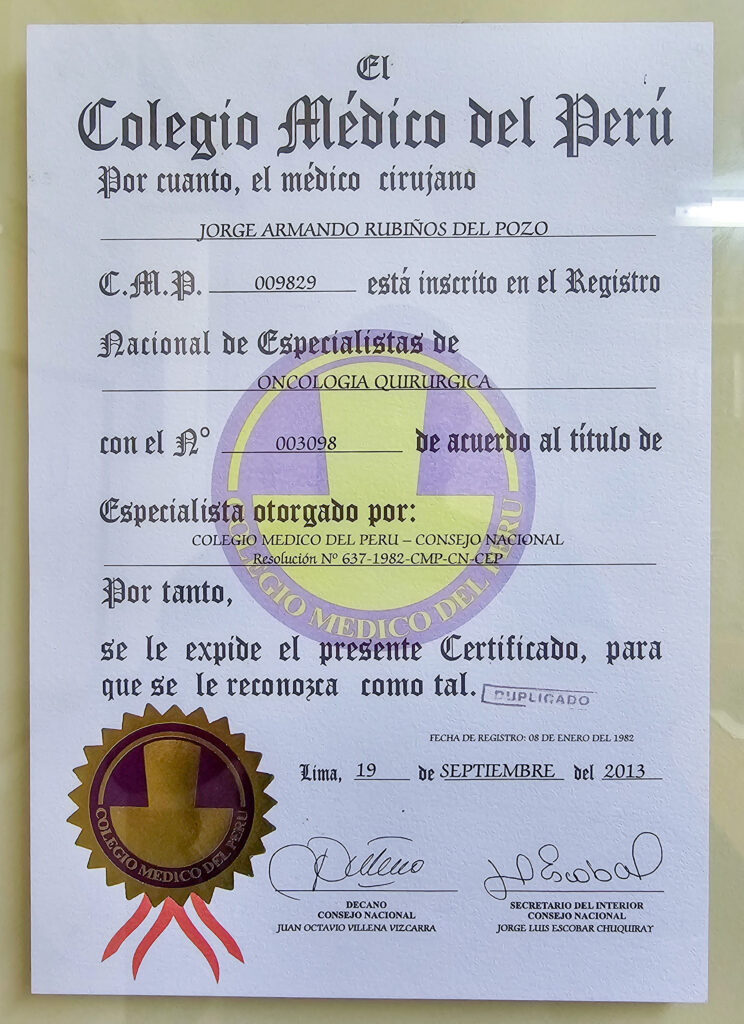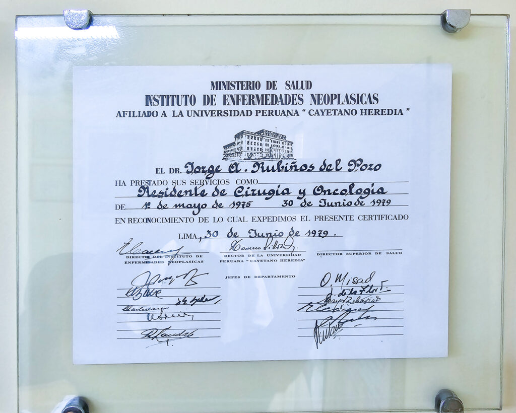 A través de los años y la experiencia en el campo médico y el tratamiento del cáncer he visto muchas realidades que de alguna forma han hecho que mi visión y misión en este campo no solo sea la de ayudar, también espero poder llegar a muchos lugares con mi plan de expansión de servicios y es por ello que mi consultorio es la sede de operaciones para poder descentralizar un servicio que es requerido por muchas personas en el Perú.
